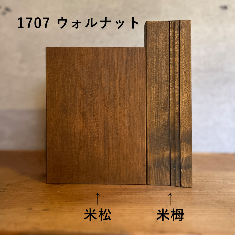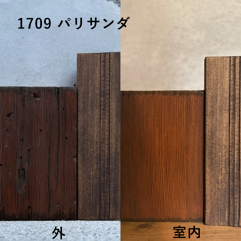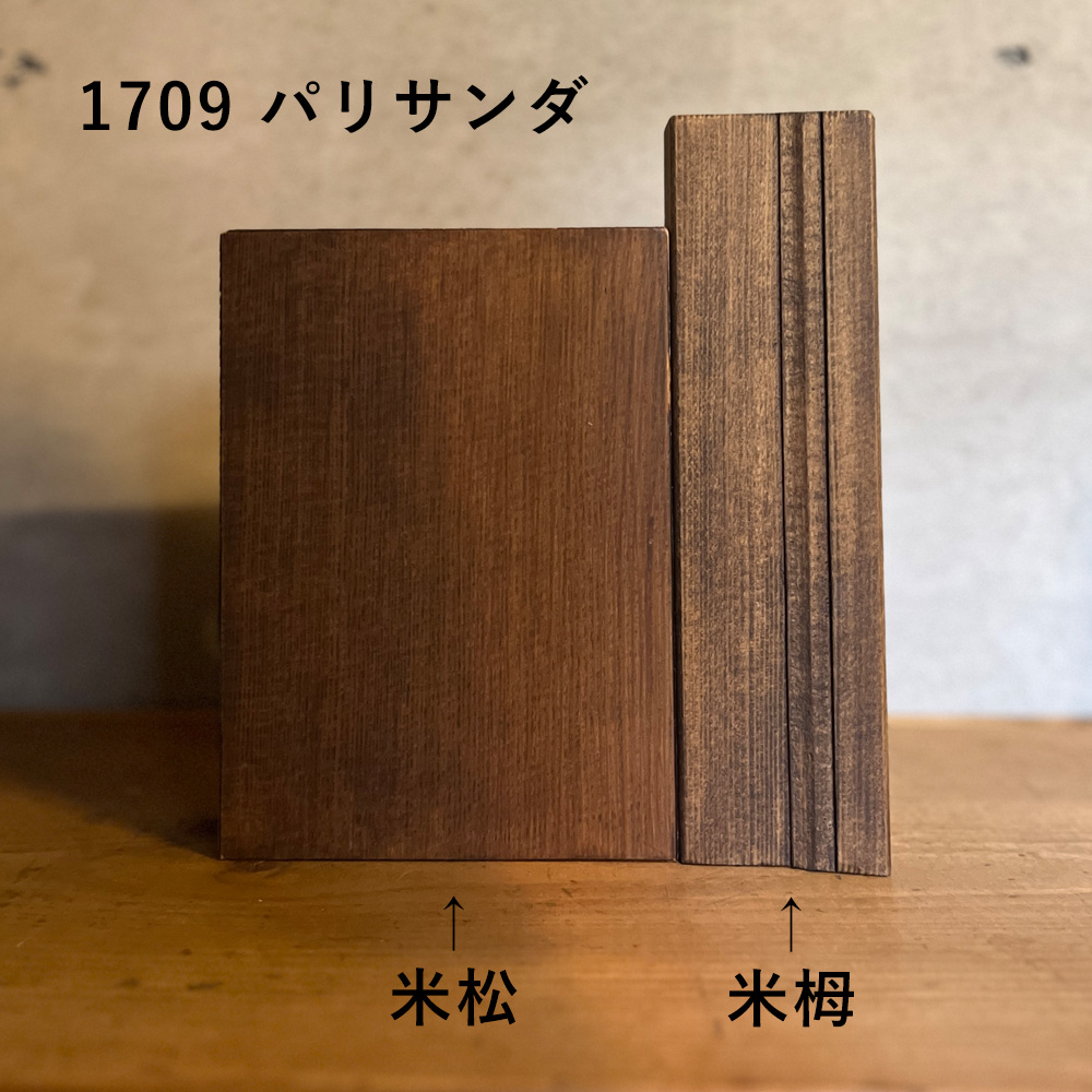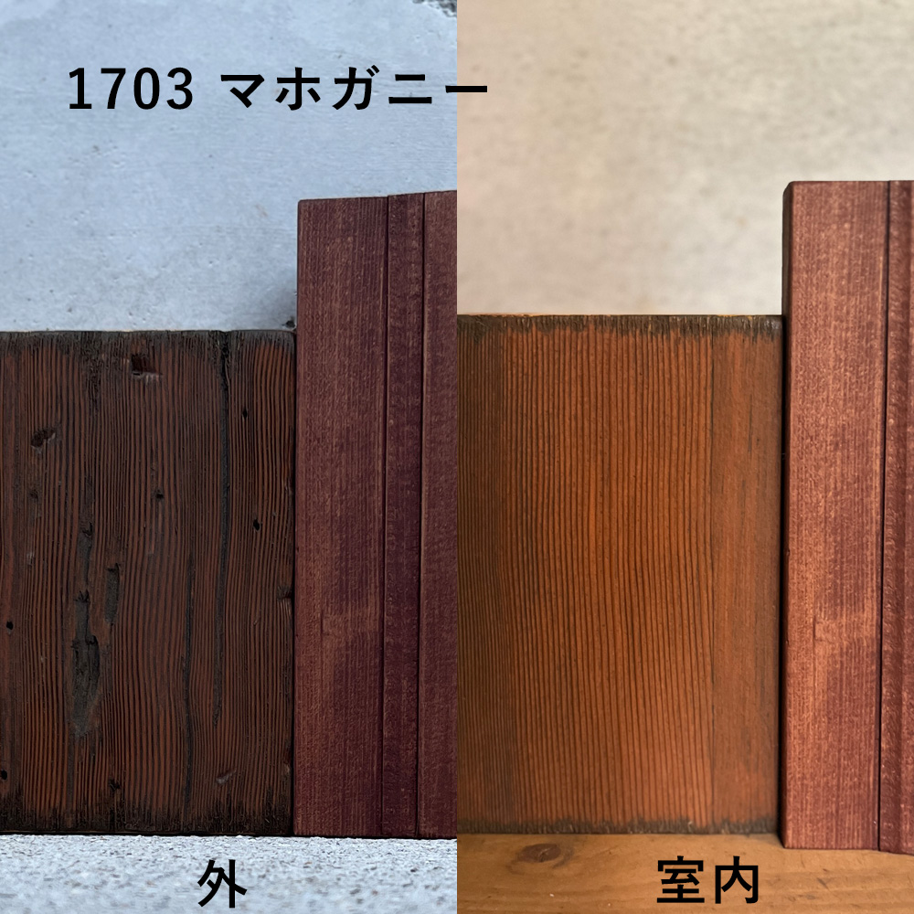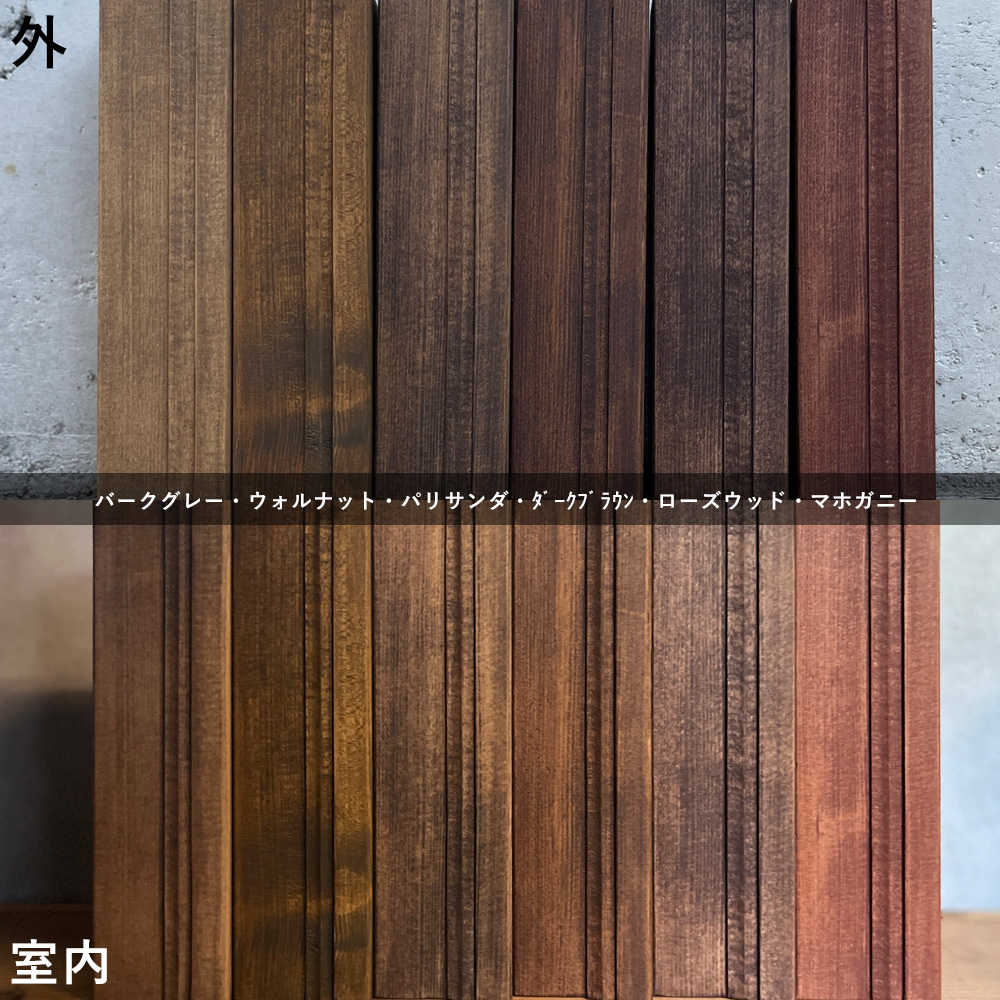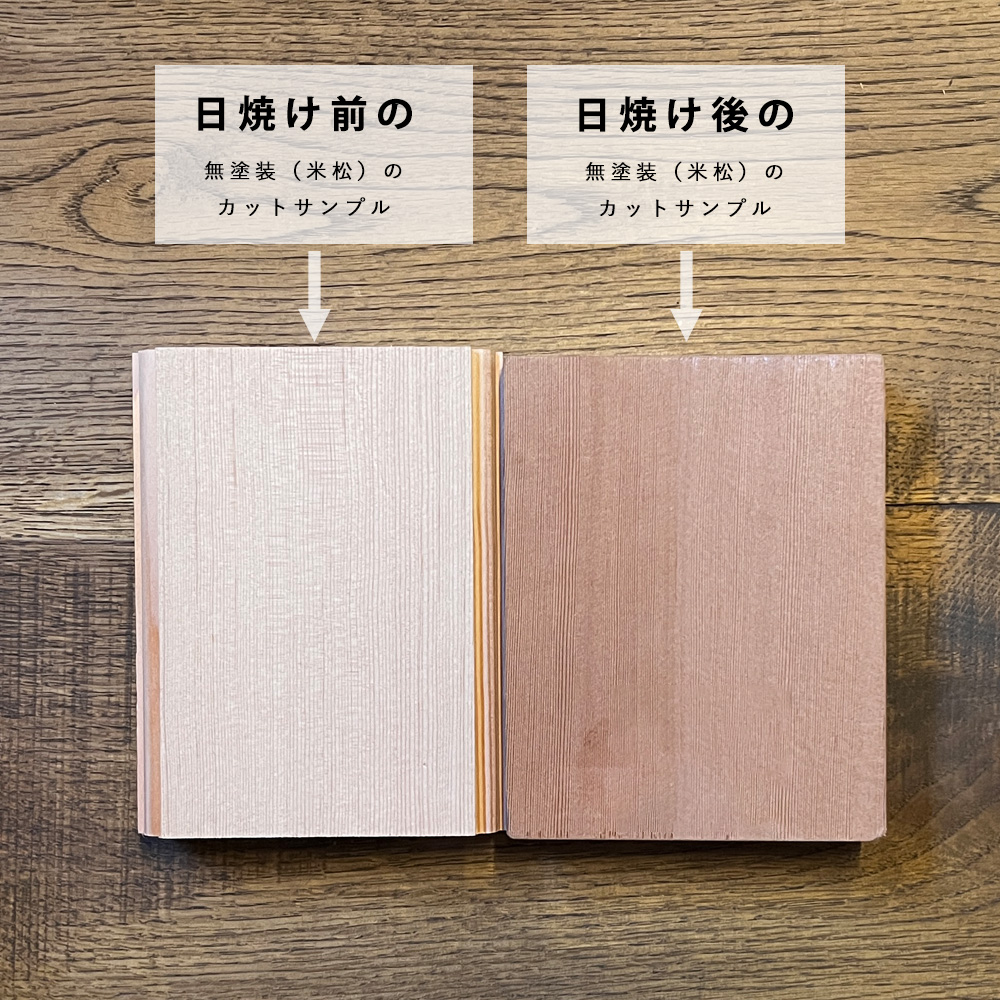 木材は光の当たり方や樹種、木目の細かさなどによって発色や塗料の吸い込み具合が大きく変わります。さらに、日焼けや経年によっても色が変化します。