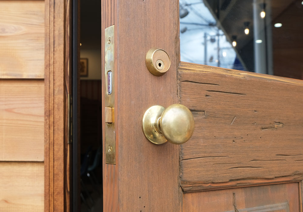 彼らが選んだのは、WOOD DEPOTの木製玄関ドア(ID-843)と、真鍮製のドアノブ(ID-1039)。 使い込むほどに鈍く光る真鍮の手触りと、経年変化する木製ドア。この「本物の素材」が、お客様を「1950年代」へとタイムスリップさせるのです。