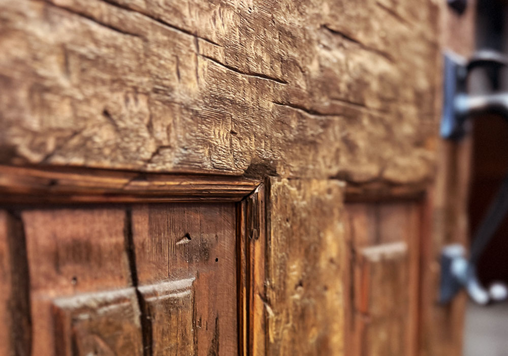 そこにヘビーヴィンテージ仕上げの質感をまとった木製ドアが寄り添うと、
