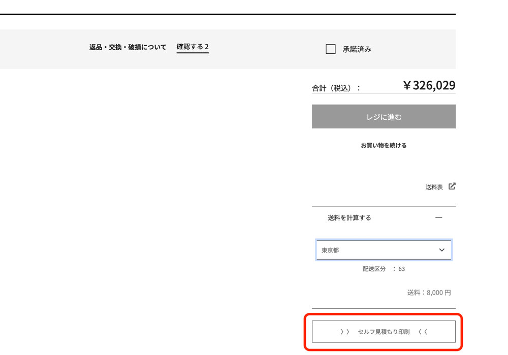 選択後、送料「8,000円」が表示されます。
