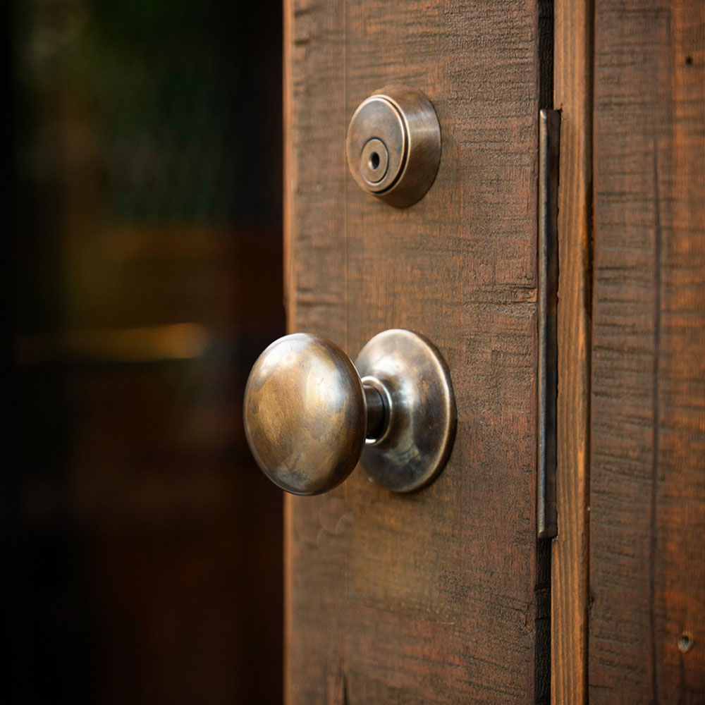 木製ドアと真鍮ドアノブの組み合わせは、傷のひとつや変色さえも「お店の歴史」や「家族の記憶」という物語に変えてくれます。誰かがドアノブを握るたび、その馴染んだ質感からあなたのこだわりが伝わるはずです。