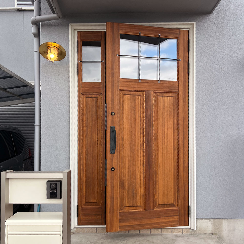 アメリカンファームハウスの顔を作る。経年美化を愉しむ木製玄関ドアの仕様