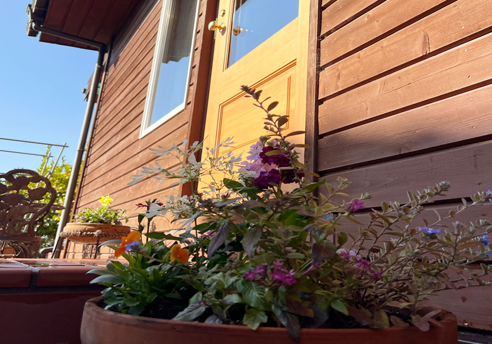 ■ 玄関先に咲く小さな花たちと、ドアの表情