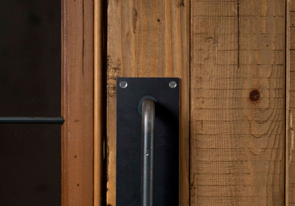 鉄の質感、木肌の荒々しさ、マイナスビスの存在感。これらが合わさって唯一無二の“雰囲気”が生まれる。そこに惚れてWOOD DEPOTのドアを選んでくださるお客様がいてくださいます。
